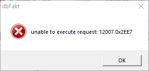 „Unable to execute request: 12007 0x2EE7“ angezeigt werden.