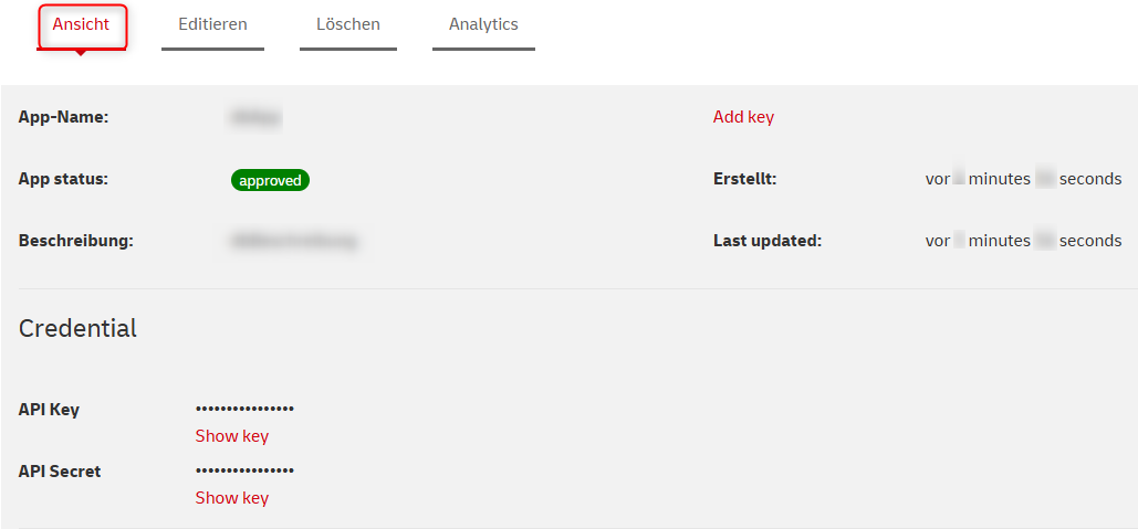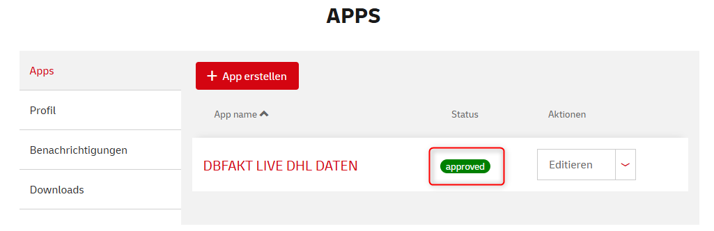 Sie werden über die Freischaltung per eMail informiert. Hiernach navigieren Sie wieder auf den Punkt APPS Ihres Kundenkontos und dieses muss dann wie folgt aussehen: