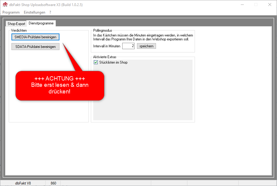Dienstprogramme \ SMEDIA-Prüfdatei bereinigen